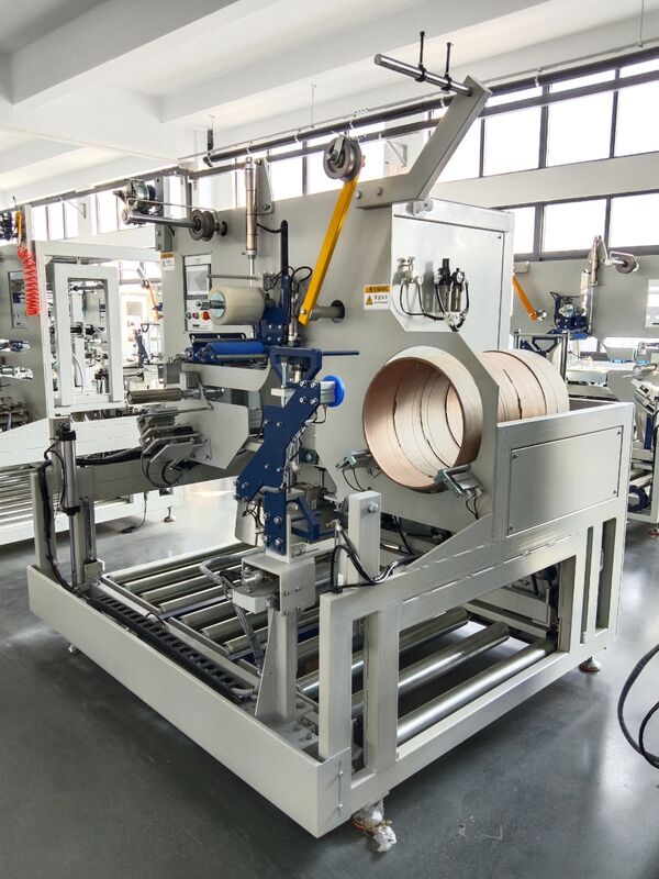 Une fois qu'un emballage enroulé a atteint la circonférence souhaitée,il est enveloppé d'un film par l'enrouleur intégrée et incliné par le système de transport intégré depuis l'enrouleur jusqu'au convoyeur à rouleaux en dessousUn nouveau tube de remontage est alimenté par le chargeur en même temps et le prochain emballage est enroulé entièrement automatiquement.